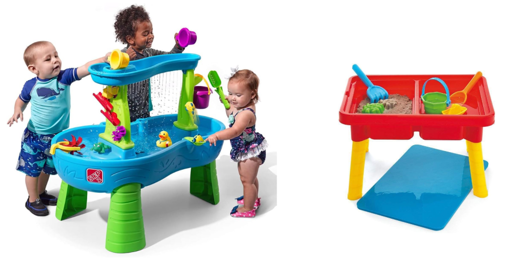 We have had so many water tables over the years! Here are two of our favorites: Two-tiered raining water table.